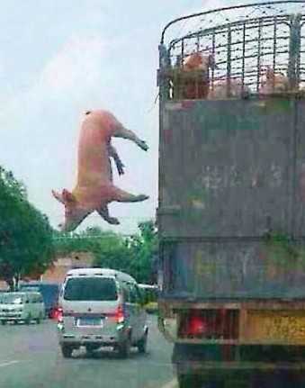 62号一网友在路上拍到一只胖猪在车上跳车安全落地,这一幕精彩瞬间引发网友的各种说法和回复,如,1.不自由毋宁死.2.“猪”你平安.3.二师兄你又活跃了. 4.一场说走就走的旅行等各种说法。最后这张图是不是PS出来的啊!