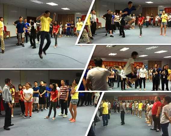 上图为“一个都不能少”跳绳游戏体验, 挑战78个参与者在1个半小时内按规则跳绳,再次激发团队成员相信自己、讲究策略、团结一心、不抛弃不放弃的精神。最终,3个小时完成游戏体验,超越极限。让每个人都感觉到自信的力量和团队团结一致的重要性!