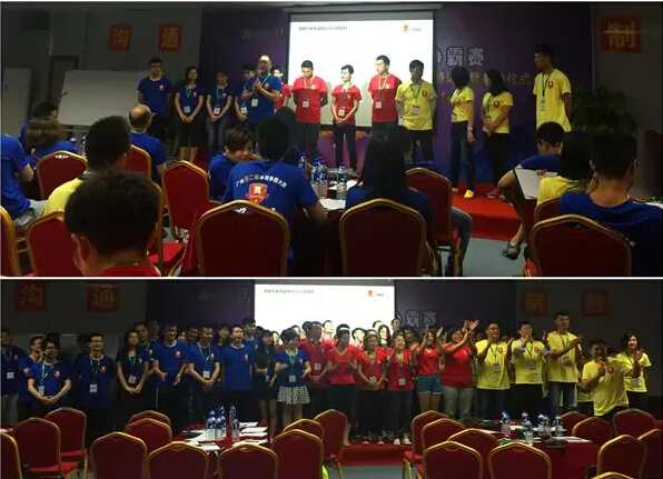 广州第二届牛商争特训营开展于2015年5月6日,由专业级教练梁健先生全程支持和引导。通过每人自我介绍、捡钱游戏、星光大道、数字游戏、滴水钱币、一个都不能少跳绳游戏、天才秀场表演、时光隧道等游戏体验,激发自我认可,挖掘团队潜力,打造团队凝聚力,把一个“团伙”打造成一个“团队”。