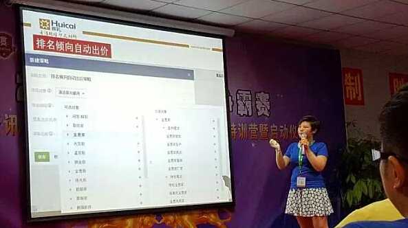 上图为广州辉彩印染材料有限公司推广专员王红分享付费推广与免费推广的技巧等干货分享。 从一个百度客服在辉彩成长为推广专员,她对百度推广的细致与极致令全场屏住呼吸认真听取分享。