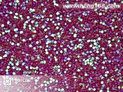 圆形金葱粉:又名圆形闪光片。包括幻彩片,镭射片、金片和银片等。主要材质有PET和PVC两种材质。大小规格(size)由1.0mm至10.0mm)。形状规则为圆形状,并有多种颜色可供选择。各种材质金葱粉可不同程度承受高温(由80*C,180*C,300*C不等) 。