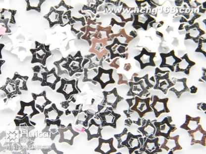 金葱粉:又名闪光片。包括铝质金葱粉,聚酯金葱粉幻彩粉,镭射金葱粉等。有铝质,PETPVC材质。大小规格(size)由1/25601mm)至1/830mm)。形状有六角形,四角形,长条针形和不规则形状,并有多种颜色可供选择。各种材质金葱粉可不同程度承受高温(由80*C180*C300*C不等) 。