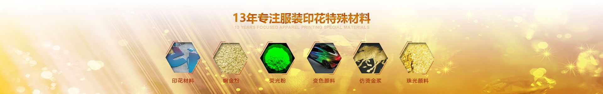 辉彩首页 | 印花材料 | 铜金粉 | 夜光粉 | 变色颜料 | 印花助剂 | 珠光颜料 | 仿烫金浆 | 辉彩视频 | 辉彩简介 | 联系辉彩