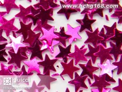 金葱粉:又名闪光片。包括铝质金葱粉,聚酯金葱粉幻彩粉,镭射金葱粉等。有铝质,PETPVC材质。大小规格(size)由1/25601mm)至1/830mm)。形状有六角形,四角形,长条针形和不规则形状,并有多种颜色可供选择。各种材质金葱粉可不同程度承受高温(由80*C180*C300*C不等) 。