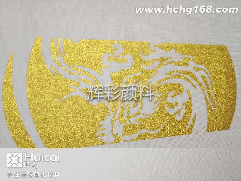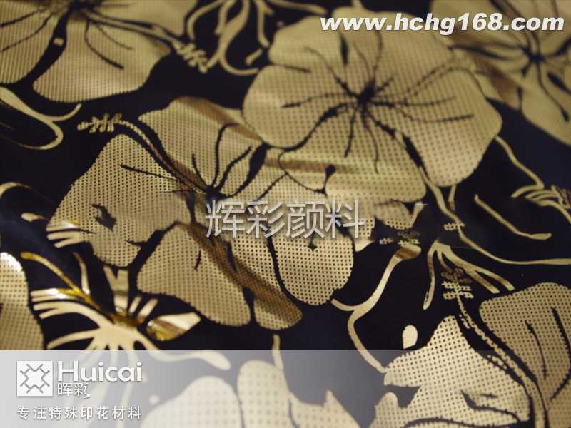为了降低生产成本,提高竞争力,建议印花厂在使用中,可根据承印物的平面情况,先用透明浆打底,然后罩印辉彩PU仿烫金浆。印花工艺完成后,即可有烫金浆烫金印花的效果,而且仿烫金浆印花具有的耐水性与耐磨擦性比烫金浆印花优越。