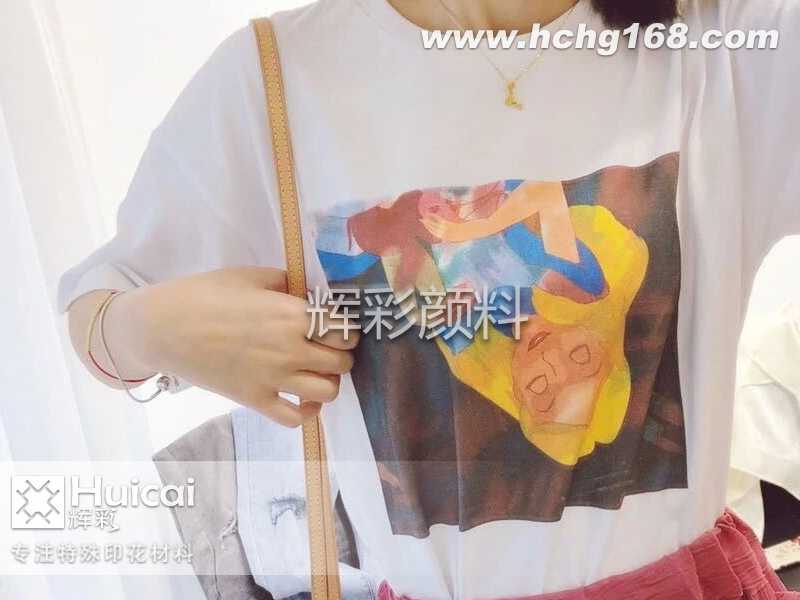 所谓水浆,是一种水性浆料,印在衣服上手感不强,覆盖力也不强,只适合印在浅色面料上,价格比较平。但是水浆有一大弊病就是水浆颜色要比布色浅。布色要是深点的,水浆根本覆盖不了。水印只能浅印深,不能深印浅,高档的水印效果,一般水印色彩饱和度做不到这么高,但它也有一个优点,因为比较不会影响面料原有的质感,还很透气,所以比较适合用于大面积的印花图案。