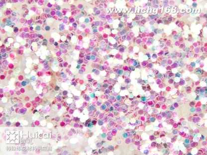 金葱粉:又名闪光片。包括铝质金葱粉,聚酯金葱粉幻彩粉,镭射金葱粉等。有铝质,PETPVC材质。大小规格(size)由1/25601mm)至1/830mm)。形状有六角形,四角形,长条针形和不规则形状,并有多种颜色可供选择。各种材质金葱粉可不同程度承受高温(由80*C180*C300*C不等) 。