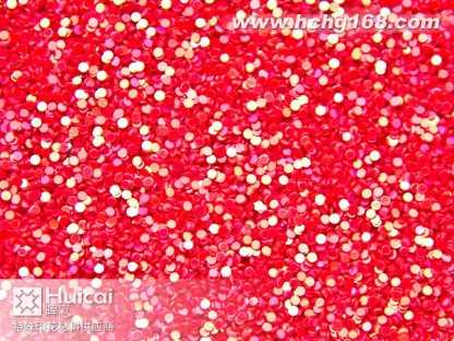 圆形金葱粉闪光片主要以喷撒的主式,用于纸,布,皮具等多种材料上,形成装饰或反光等特殊或醒目的效果。