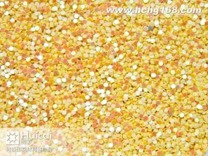 圆形金葱粉:又名圆形闪光片。包括幻彩片,镭射片、金片和银片等。主要材质有PETPVC两种材质。大小规格(size)由1.0mm10.0mm)。形状规则为圆形状,并有多种颜色可供选择。各种材质金葱粉可不同程度承受高温(由80*C180*C300*C不等) 。