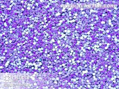 圆形金葱粉闪光片主要以喷撒的主式,用于纸,布,皮具等多种材料上,形成装饰或反光等特殊或醒目的效果。